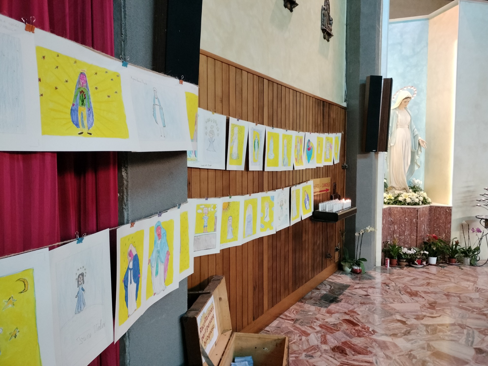 Tanti bambini, piccoli artisti, che, insieme alle loro famiglie ed insegnanti omaggiano la Madonna attraverso i loro disegni, rappresentandola.
